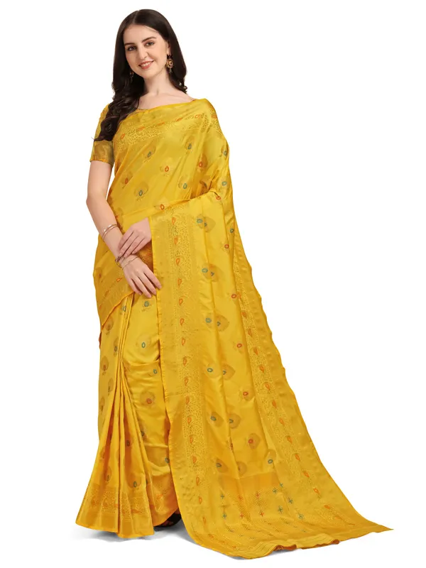 Yellow Banarasi Kanjivaram Woven Cotton Silk Saree