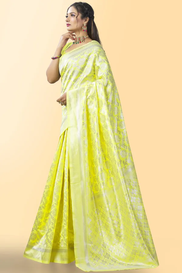 Yellow Kanjivaram Soft Cotton Woven Silk Saree