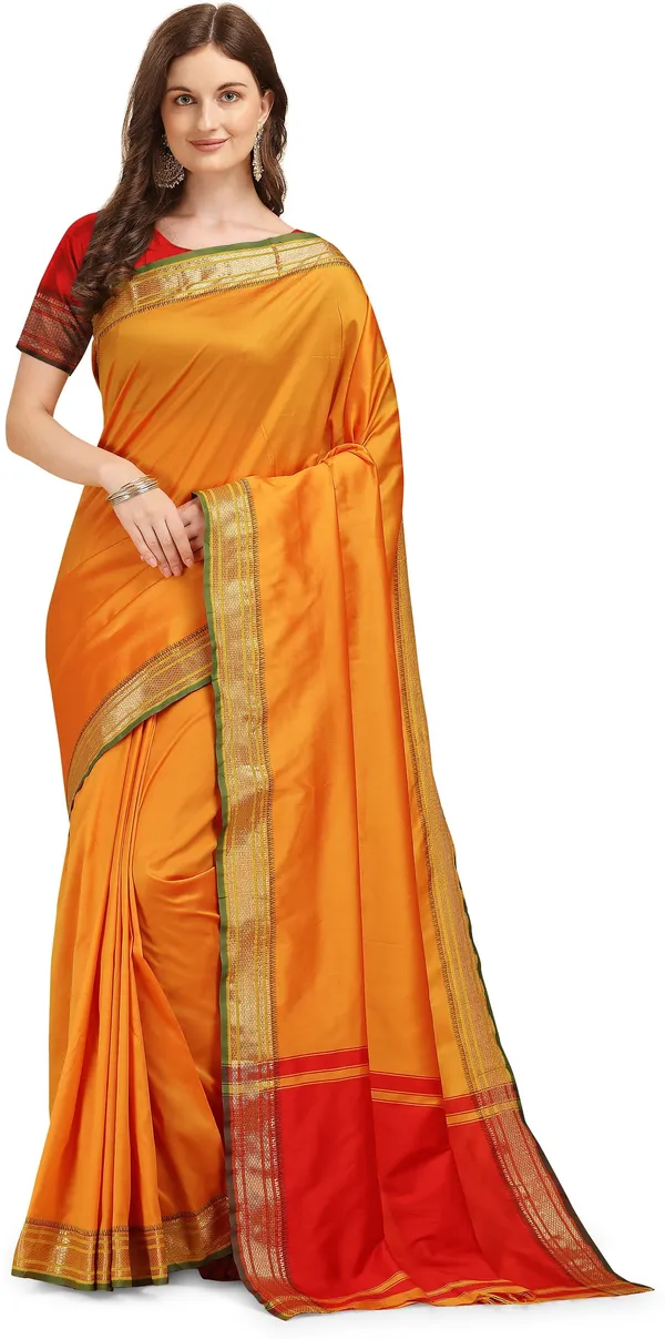 Yellow Kanjivaram Soft Cotton Woven Silk Saree